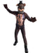 • If your kid is a video gamer but wants an outfit that shows off the scarier side of Halloween, then you need to order the Nightmare Freddy Children's Costume. Included in the set are a pair of brown mitts, a jumpsuit and a mask. Freddy is the leader of the animatronic band at Fazbear's Pizza. He is harmless in the daytime but comes alive at night. In the video game Five Nights at Freddy?s, Nightmare Freddy leaves the pizza place and appears on the bed of a child?s bedroom. He is a much more decrepit and scary creature those seen the previous 3 games. The player must shine a light on him and make him disappear or he will eventually attack. Even a flashlight can?t make your child disappear, so be wary when he is dressed in this outfit.