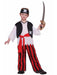 Our Kids Pirate Costume is the perfect choice for a little boy who dreams of firing on enemy ships and going on adventures in the Caribbean! This pirate outfit comes with colorful pirate coat, pants, and shirt, that will make him fit in with any of the characters in Pirates of the Caribbean. He?ll look like he?s off to Tortuga when you dress him up in these bright and roguish colors on Halloween night, so he?ll be sure to have a rollicking time trick-or-treating! You can be sure he?ll bring home plenty of booty when he?s dressed up as a legendary thief, so get ready for your neighbors to raise the alarm about bands of marauders going around the neighborhood! He?ll be robbing people of their candy on Halloween with his crew of friends, so don?t be surprised if he?s getting up to some tricks as well as treats. This pirate outfit will make him want to re-enact his favorite scenes from his favorite pirate movies, so if he ends up wanting to dress up in this costume during regular make-bel