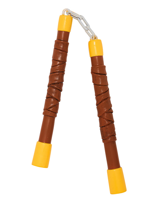 • If you're dressing up as the TMNT jokester of the crew this year, then you need our Kids' Teenage Mutant Ninja Turtles Michelangelo Nun Chucks. You will receive just the pair of nun chucks you need to cruise through the city and take down enemies with just a flick of the wrist. These nun chucks feature a brown and orange design held together with a faux metal chain that will make you look like a true ninja warrior. This accessory is perfect for completing your Michelangelo costume and having a night of ninja fun. Get your Kids' Teenage Mutant Ninja Turtles Michelangelo Nun Chucks now!