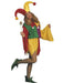 • Everybody loves a good prank. Be the cutest jokester around when you come in wearing a King's Jester Adult Costume! This colorful get-up is made of red, yellow, green, and purple fabric, giving you that famous particular scheme. The long bell sleeves won't constrict your arms as you juggle, giving you plenty of ventilation and freedom. White pom poms dangle from the tip of the collar. Start dancing for His Highness and the pointed edges of the skirt will kick up around the mid-thigh hem, showing off legs that would have any king asking for an encore. Pop on the two-pronged jester cap to finish your King's Jester Adult Costume and you'll put a smile on anyone's face! Pair it with tights, a jester staff, and pointed shoes, sold here. Can be worn as a tunic for men's costumes.