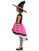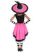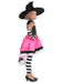 • Enchant your friends and family with your daughter's Halloween costume this year. Our Luna the Witch Girl's Costume can help. It's a mash up of different textures and styles so appealing anyone who lays eyes on her will be impressed for sure. The dress starts at the top as a lacey patterned black and white affair before flaring into a pink skirt with black and white trim. The hat is pointed and expertly crooked at the top. The whole ensemble, however, is brought together by the hand and leg warmers. Sure, they are just simple, thick striped, black and white pieces but sometimes less is more. And this Luna the Witch Girl's Costume is more than enough to prove that.