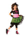 • Your daughter will be looking funky and vibrant as ever this Halloween when you pick up the Material Girl 80's Costume! With your purchase, you will receive a a cute black off the shoulder top with a pink heart on its front, a pink tank top, a black and lime green zebra stripe skirt, a pair of black capri leggings, a head scarf, glovelets, and a belt. Buy yours today, and then scan our site for more fun Halloween costume gear and accessories for your daughter.