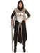 • You'll be slaying dragons, rescuing princes, and protecting the kingdom this Halloween when you pick up our Medieval Warrior Costume for Adult! With your purchase, you will receive a pretty silver armor tunic with an attached silver cape, a pair of black warrior leggings, and a matching hood. Pair this costume with a fun weapon or sword from our site, and you'll be ready to tackle evil in no time. Buy your womens medieval costume today!