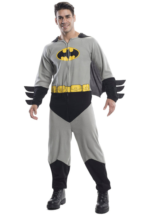 • Unleash your inner Dark Knight in cozy style with the Men's Justice League Batman Zipsters Costume! This officially licensed one-piece features Batman’s iconic suit design inspired by the Justice League film, complete with a yellow utility belt, and the legendary Bat symbol emblazoned on the chest. Made from soft, breathable fabric with a front zipper closure, this ultra-comfortable zipster is perfect for lounging at home, comic cons, costume parties, or patrolling Gotham from your couch. The attached cape completes this costume for that unmistakable Caped Crusader look. Whether you're suiting up for Halloween, a movie marathon, or just a heroic night in, this Batman Zipster brings justice, comfort, and style all in one swoop.