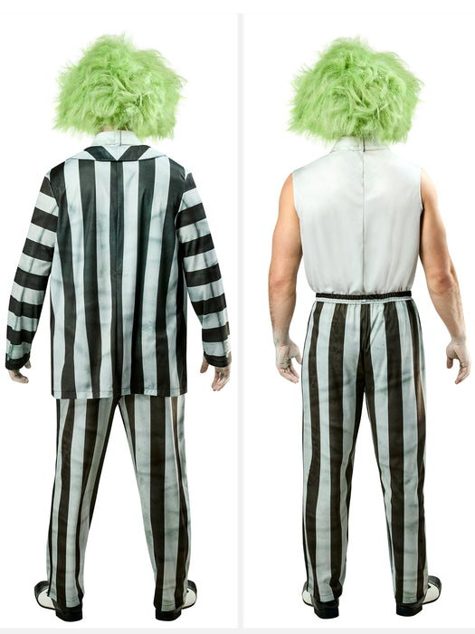 While this costume has everything you need to become this wild and maniacal prankster demon, if you want to dress it up even further, then be sure to scan our site for a Beetlejuice green wig, along with some face makeup for some more white and black accents. Bring the whole Beetlejuice cast alive and make it a costume theme for the ages, hitting the town with Lydia, Astrid, and all your Sandworm buds. Nothing is more fun than celebrating the spooky and fun vibes of Beetlejuice with friends and family at your side, that's for sure. Pick up your Beetlejuice costume and matching accessories today, and go make this a haunted night of chaos and mischief you won't forget!