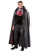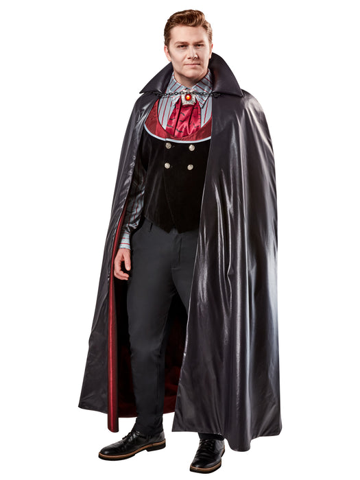 • Head to the party wearing the Men's Big and Tall Vintage Vampire Costume and everyone will be looking to join your coven of vampires before the night is through. With this set, you will receive everything you need to become a Transylvanian immortal who knows a thing or two about hanging upside down from coffins while they sleep. Featuring a long gray sleeved shirt, a black and red accented vest, and a long black and red cape that drapes down to your feet, you're going to love this powerful vampiric wear.