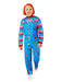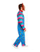 With this set, you will receive everything you need to become your favorite horror movie villain. Featuring a blue Good Guy overalls jumpsuit with the matching evil Chucky mask with bright red hair, it's no question that you'll be causing lots of trouble this year while all decked out in this creepy doll outfit. Pair this costume with a matching Chucky knife from our site, and you'll be all ready to go on a killing spree. Pick up your Chucky costume and mask today!