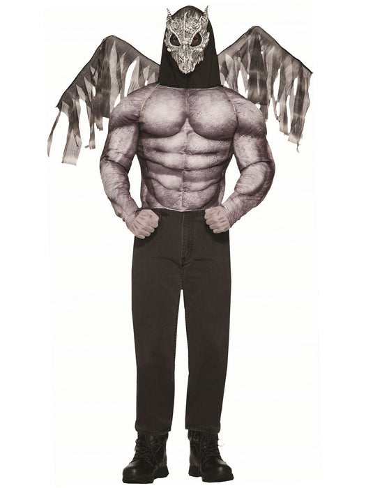 • Unleash your inner guardian with our Men's Mythical Creature Gargoyle Costume! This epic ensemble includes a sculpted muscle top for a strong and formidable appearance, as well as wings to give you the power of flight. And with the included hooded mask, you'll transform into a truly fearsome gargoyle. Protect your kingdom this Halloween!