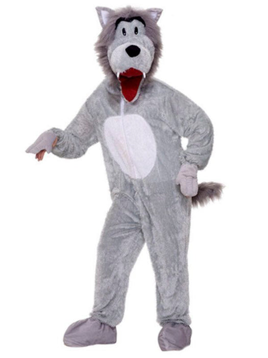 With all the talk of the big bad wolf, Little Red Riding Hood should have known better than to go traipsing through the woods with a picnic basket full of treats. You can gobble up grannies galore when you bring a fairytale to life in this Men's Plush Story Book Wolf Adult Costume! This fun and playful ensemble is great for Halloween or for acting out classic stories for kids. The plush grey jumpsuit zips in the front with a white belly patch. It features shoe covers and attached paws, as well as a bushy grey tail in the back. The jumpsuit comes with a character headpiece with pointy ears, a mischievous look, and a long snout with teeth. The mouth opens to reveal a hole where your face pokes through. Whether you're huffing and puffing at the Three Little Pigs or trying to steal a picnic from Little Red Riding Hood, you're going to love living in a fairytale wearing this Men's Plush Story Book Wolf Adult Costume!