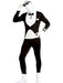 • You don't want to go out this Halloween dressed in something cute, scary, or surprising. You want an outfit with class and mystery, so the Men's Tuxedo Skin Suit Costume is the right choice for you this holiday and for any other event. The order features a skin tight costume that depicts a tuxedo print all over. The back of the costume features a discreet zipper, and that's about it because there are no other holes or openings found. The attached mask doesn't even have a hole for your nostrils. Luckily, the costume is made of a thin and breathable material that will allow you to see and breathe out of it with no difficulty. The printed jacket, tie, and buttons will be a fun surprise for everyone else attending the party. Make your identity a total mystery.
