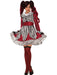 • Wreak all kinds of havoc this Halloween while dressed in the Miss Mischief Female Clown Womens Costume! This fun clown costume is designed in the color scheme of a Parisian mime, with its black and white stripes and its crimson red aesthetic. With your purchase, you will receive a beautiful striped and polka-dotted dress, a matching red belt, a frilly white collar with black trim, and knee ties. Pair this beautiful clown costume with a matching red and black wig and some fun mime-like face make-up from our site, and you'll be ready for whatever the night throws your way. Team up with your other clown friends this year, and you can really give the party a fun and entertaining show when you all arrive. Buy your mischievous clown costume today, and go make this Halloween a real hoot and a holler of a time!