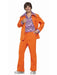 • Youll be the life of the party thanks to your new smooth Orange Leisure Suit Mens Costume. This Halloween set the tone through leading the way by picking up some fashion that was on the cutting edge back in the 70s. Featuring an orange jacket with funky shirt front this product also includes pants and cuffs for a complete look thats so authentic, all your friends will be eager to hit the dance floor and get down with their bad selves.