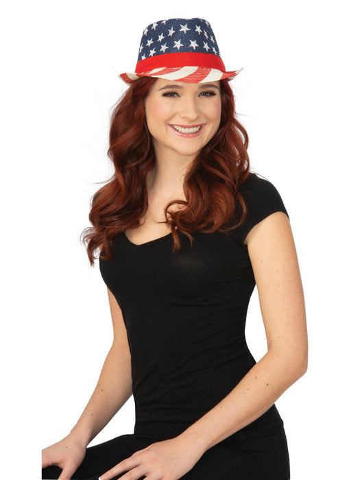 • When it's time to celebrate your love of America, do it from your head to your feet. This Patriotic Burlap Hat can help. It's the fedora to end all fedoras. This red white and blue printed cap is all about the stars and stripes, baby. Wearing one is like wearing a healthy dose of all American pride! Be the most patriotic person on your block this Fourth of July. Order a Patriotic Burlap Hat today!
