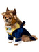 Beauty and the Beast? More like Beauty and the Cutie. Transform your beloved pup into the most dapper and adorable Beast this year with our Pet Beauty and the Beast Beast Costume. Your furry friend will exude elegance and charm as they step into the role of a true prince! While they may take on the persona of the Beast, deep down, your pup will always be the prince of your heart. This super-detailed costume set ensures that your dog not only looks the part but also captures the magic of this beloved Disney tale. The centerpiece of this enchanting costume is the Beast headpiece, which adds an air of regal sophistication to your pet's appearance. It's a symbol of the transformation that occurs in the heart of the Beast, showcasing the inner prince that resides within. Complementing the headpiece is a blue and yellow suit jacket adorned with an attached turquoise gem bow, an attached shirt, and a pair of pants. This ensemble mirrors the attire of the Beast in the Disney classic, ensuring your pup embodies the character's unique charm and style. The costume is designed for both aesthetics and comfort, allowing your dog to move freely and comfortably while looking handsome and princely.