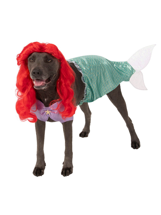 This year, get ready for your furry friend to make a splash like never before as they embrace the enchanting world under the sea with our Little Mermaid Ariel Big Dog Pet Costume. This captivating outfit will transport your pup into the mesmerizing realm of Disney's Ariel, where she can be a mermaid both on land and in the water, ready to capture hearts with her tail-wagging and tail-flipping antics. The complete package of The Little Mermaid Ariel Big Dog Pet Costume ensures your dog will be a standout sensation at any event! Central to the costume is a stunning teal mermaid tail, a shimmering replica of Ariel's distinctive aquatic lower half. This tail radiates beauty and allure, making your pet the true mermaid sensation of the party. To complement the mermaid tail, the costume includes a lavender shell top with a golden star embellishment, adding an extra touch of authenticity to your pet's transformation into Ariel. Additionally, a striking red wig completes the look, ensuring your dog fully embraces the character from head to tail.