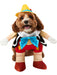 • Your pup won't be able to lie about going through the trash or digging that hole in the backyard anymore when they're wearing our Pet Pinocchio Costume. With this set, you will receive everything you need to turn your furry friend into the cutest puppet to ever wag their tail and grow their nose. Featuring an adorable walking Pinocchio get-up with red shorts, a black vest, and a blue bow, as well as a matching yellow coned headpiece, you're going to love this Disney look.