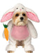 • Thought your dog couldn't get any cuter? Wait til you see their little smiling face as they scurry up to you - carrot in hand - in our Pet Walking Bunny Costume! This look is worn as a step-in shirt with sleeves for your pet's front legs, which makes it look like the bunny is actually walking and running upright. In other words, it is a hilariously endearing look that's perfect on any pup. It features plush character arms - one of them holding a carrot - and the attached hood has a bunny face with floppy ears to complete the look. Your pup will be hopping into everyone's hearts this Halloween!