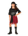 • No storm will be too rough for your daughter this Halloween when you pick up our Pirate Girl Kids Costume! If you're looking for a fun and rugged scalliwag get-up for your little angel this year, then you can't go wrong with this one. Complete with a black dress with a red and black striped skirt, a matching waist sash, and a black head scarf, your daughter will be leading the ship in no time. Buy your pirate girls costume today, and then scan our site for matching pirate weapons and more!