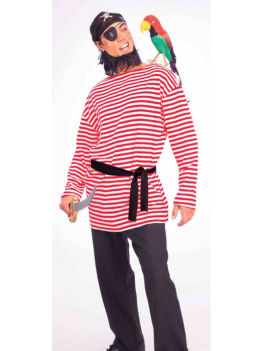 • All pirates on deck! The captain orders the pirates who are dressed to hunt for sunken treasures! Each mate wears unflashy garb like this Men's Red and White Striped Pirate Matey Shirt so he is free to fight pirate ships and dig for treasure chests of gold emeralds and rubies! Includes a red and white striped pirate shirt for any pirate event you may have coming up. All other parts of the costume pictured are not included but can be found in our accessory collection Blend right in with the pirates on board with this Men's Red and White Striped Pirate Matey Shirt!