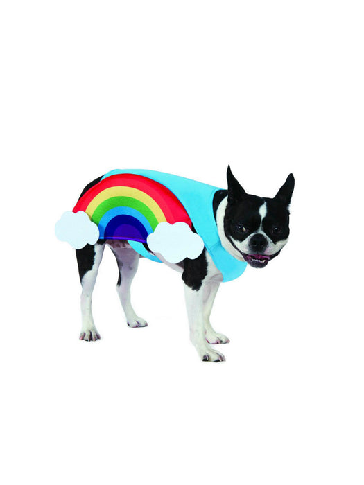 • Red and yellow and pink and green. All the colors of the rainbow are here with the Rainbow Pet Costume. This sky blue tunic features a rainbow across the sides of the ensemble. Two fluffy clouds are affixed to either end of the colorful rainbow. The open and airy leg holes will allow your dog to move about easily. Shop for costumes and accessories for pets online today.