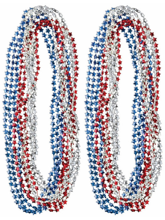 Adult Red, White and Blue Stars Mardi Gras Bead Necklaces