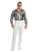 • Dance until you cant dance anymore in boogie wonderland. But first you have to have the right outfit. Put on the Silver Nail Head Disco Shirt for Men. The metallic silver will reflect off the dance floor and make your dance moves look extra groovy.