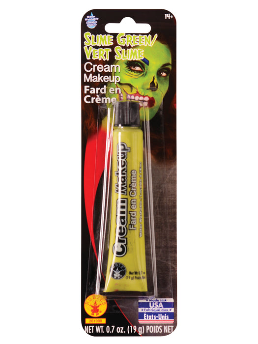• Looking for the perfect green makeup to complete your look? Then look no further than our Slime Green Cream Makeup. Whether you're dressing up as an evil witch, an alien, or a green goddess, you are going to be looking absolutely stellar when you're sporting this green makeup on your skin. Featuring one tube of bright green makeup that is super easy to apply, you definitely do not want to miss out on this one.