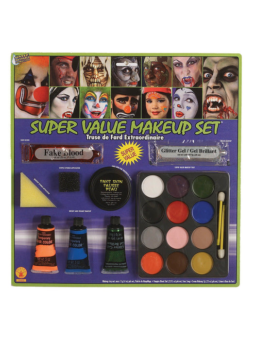 What's a family of extra-creative creature beings to do when they're low on pigment but high on fun? Super Value Makeup Set to the rescue! For adults and children who dream bigger, this super extensive makeup kit makes all the difference. Comes with everything you need--and more! Kit includes fake blood, fake skin, glitter gel, cream color and applicators. Use with ease knowing it's water washable, so you can take it off as easily as you put it on. Your family will never be the same. Portraits encouraged.