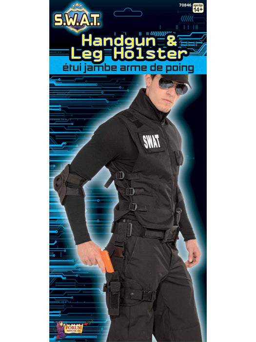 • Be sure to get ready for action with the Swat Leg Holster. No criminal stands a chance when you have this holster to hold your weapon. With this accessory by your side, you can go from good to great in a matter of minutes. No SWAT costume is complete without a perfect holster to brace your weapon, so make it yours today! Give your ensemble some life with the Swat Leg Holster today.
