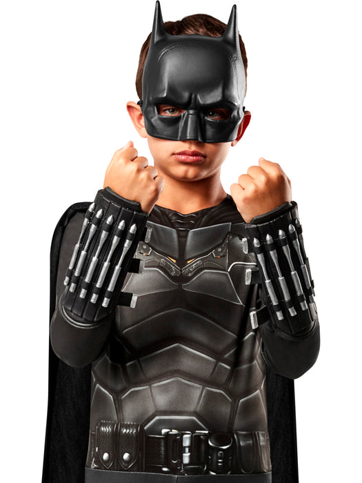 • Does your kid want the ultimate Batman costume? Then you better not forget the essential accessories that will give them the power and protection to take down Gothams criminals. Make their costume look intimidating and tactical just like in the DC Comics movie, The Batman, with these officially licensed Kids The Batman Gauntlets. These black 3D arm gauntlets that have dart-like arrows strapped across the forearms and will make your childs Batman costume the best in all of Gotham!