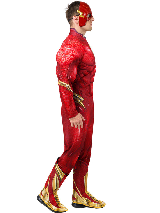 • You will be the fastest man alive, Barry Gordon aka The Flash, when you wear our Men's The Flash Movie Flash Muscle Chest Costume - Deluxe! This heroic outfit includes a red padded jumpsuit with gold lightning bolts and attached boot tops, plus a detailed half mask. Look extra buff in this deluxe costume since it's padded to give you some extra last minute muscles. Embrace your inner superhero and gain unimaginable speed in this costume perfect for comic cons and justice-saving costume parties. Get your jumpsuit on, it's time to save the day! Whether you're attending an event or just trick-or-treating, you'll be sure to show off your superpowers in this officially licensed DC Comics product.