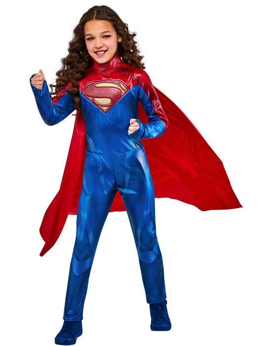Get ready for your child to unleash their inner superhero with our Girls' The Flash Movie Supergirl Costume! Made with high-quality materials, the blue jumpsuit is both comfortable and durable, so your kid can play and be the hero all day long. The jumpsuit is features the iconic S-shield logo and the red cape completes this heroic costume, so they can fly around just like Supergirl! This officially licensed DC Comics costume is perfect for Halloween, costume parties or anytime your little one is feeling invincible. So get ready for some super fun, and watch your young superhero in training show off their skills in style with this awesome Supergirl Costume. Looking for group or family costume ideas? Supergirl and the rest of the Justice League are always on the top of costume lists. Be sure to check out the rest of our officially licensed Batman and Flash costumes from The Flash movie and find a costume for the whole family!