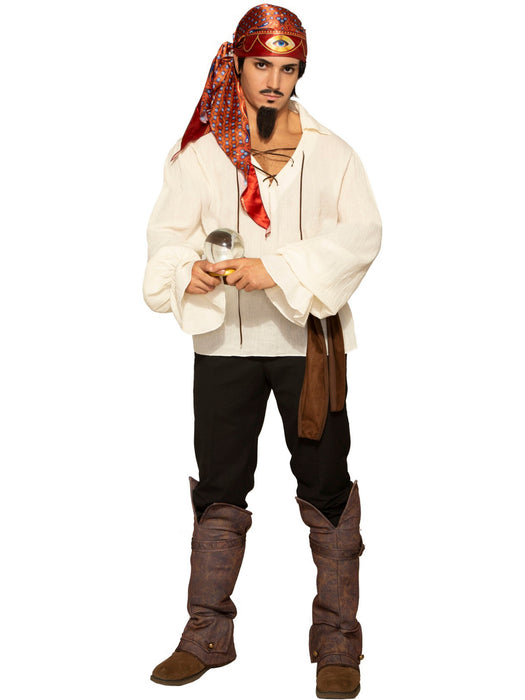 • You will see all when wearing the Third Eye Headscarf. Perceive beyond the tangible and into future. Fortune tellers, mystics, mediums, and others can use this item during their sessions. It comes as a long headscarf with a shimmering red color. There are designs along the surface but a prominent eye image should be placed at the forehead. Anyone can use this to start their journey into the occult or just have it as part of a costume.