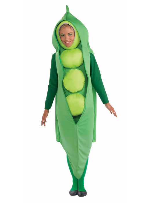 • If you're looking for the perfect family-friendly ensemble for this year's Halloween festivities, this Unisex Adult Peas in A Pod Costume is a great choice. This comfortable ensemble includes a molded face piece attached to a vest front adorned with three bright green peas. It comes with a Kelly green hooded pod tunic with openings on the sides for your arms and a slit in the front to showcase the pea vest front. Green tights similar to those shown here are available separately in our selection of accessories. This outfit is great for parents who want to go trick-or-treating with their kids, but it could also be worn during a play or assembly about nutrition. We carry a variety of outfits for other fruits and veggies so you could even plan a unique group costume for your family or friends using this Peas in A Pod costume for adults.