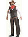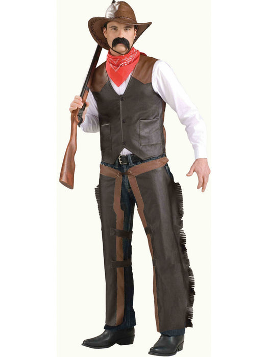 • Make sure youre ready to ride out in search of outlaws this Halloween with proper Wild West attire like the Western Cowboy Chaps. This brown legwear comes with a lighter trim that makes for a rugged addition to your ensemble ensuring an authentic look no matter the cowboy costume that will have you feeling ready to restore law and order to the American frontier. Everyone at the party will be able to rest a whole lot easier knowing youre on the watch for trouble.