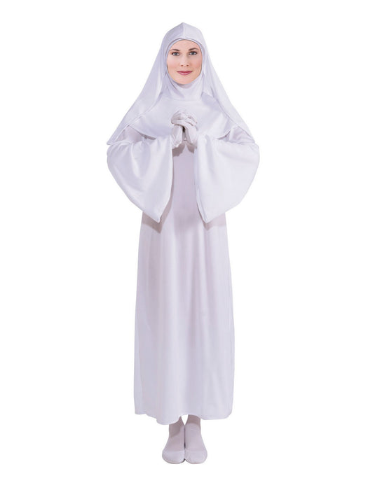 • You'll be looking like an angel who descended from heaven when you put on the White Nun Women's Costume! We often see nuns in black and white cloaks, though with this special all-white costume, you can show everyone you're not just an ordinary nun; you're a nun with some extreme piety and service to God. With your purchase, you will receive a gorgeous white dress with draping sleeves, a collar, and a white overhead headpiece. While dressed all in white, you'll be feeling as pure as the light of the Lord itself. Head to the party as this devoted Nun, and you'll have people asking for confessionals, advice, and all of your sagely wisdom. Team up with some other sisters of the covenant this year, and you can all roll out to the party like a crew of God's servants! Talk about a fun night. Pick up your white nun adult costume today, and go make this Halloween your holiest one yet!