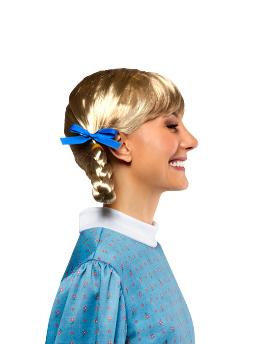 • Our Women's American Girl Kristen Larson Blonde Braided Ponytail Wig is the ideal addition to the Kirsten costume. Style the wig in two looped-up braids, just like Kirsten always wore! This hairstyle is an iconic Kirsten and the best way to complete any costume. Complete the look with our Kirsten Larson costume and you'll be ready for Halloween or a themed party. We also have other American Girl costumes, include Molly McIntire, Kit Kittredge, and Samantha Parkington.