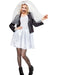 With this set, you will receive everything you need to become the most horrific doll to ever come off the shelf. Featuring a white wedding dress with an attached black jacket, as well as a white wedding veil and a pair of glovelettes, you'll be all ready to celebrate your big day as the Bride of Chucky while donning this matrimonial wear. After all, what's a wedding without a little evil and murder trickled in? Pick up your Tiffany Valentine Bride of Chucky costume today and go spread a little wickedness wherever you go.