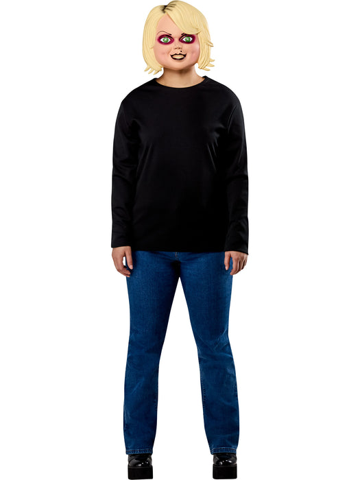 With this item, you will receive just the mask you need to become one of the most wicked dolls to ever exist. Featuring a vacuform 1/2 mask in the style of Tiffany Valentine's face with blonde hair and black eye shadow and makeup, this mask is sure to complete the rest of your sinister dollish look. Perfect for causing chaos and wreaking havoc at whatever party or event you find yourself at, you're going to love this one. Pick up yours today, and then team up with Chucky for an evil costume duo nobody will be prepared to see!