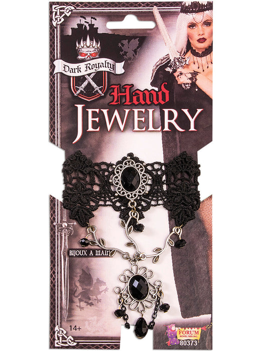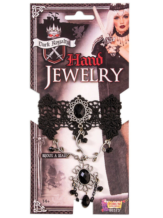 • From a gothic princess to a rock star, the Women?s Dark Royalty Hand Jewelry Accessory is a great addition to any costume! This costume accessory is a women?s size standard and fits most. Turn Halloween up a notch and wear the Women?s Dark Royalty Hand Jewelry Accessory with your costume!