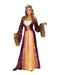 Live the life of luxury all thanks to the Women's Medieval Royalty Dress. Back in the Middle Ages, a member of the royal family could enjoy bountiful riches, lavish banquets, and more. Fair ladies of the era, whether queens or princesses, would never venture out of their castles without looking their best. This particular outfit is lovely and fitting of such a royal demeanor. This dress is very dainty and it comes in a maroon and gold-yellow combination. There are ornate designs along the front just to make it all the more elegant. Large, open sleeves with fur trim cuffs shows signs of nobility as well. Wear this Medieval Royalty dress to all kinds of fun events such as Renaissance Fairs, festivals, cosplay conventions, and even on Halloween. Come up with your own backstory for this Medieval maiden. There are jewelry, crowns, and other accessories you order to include as part of the ensemble.