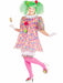 • Are you looking for a Halloween outfit that will tickle your fancy? Then you must order the Women's Plus Size Tickles the Clown, which includes a dress, matching bloomers, shoe covers and fabric covered hair tie. Designed to fit most women sized 18-22, the colorful dress features dual patterns; it has vertical stripes on the sleeves and polka dots on the rest of the dress, with the dominant color being pink. The white bloomers are trimmed with completing stripes while the vibrant shoe covers and scrunches are each highlighted by a pompom. This playful outfit is very kid friendly and can be worn at a child's birthday party. It is also an amusing choice for a carnival or circus themed event. Gloves, tights, lollipop and wig do not come with the outfit.