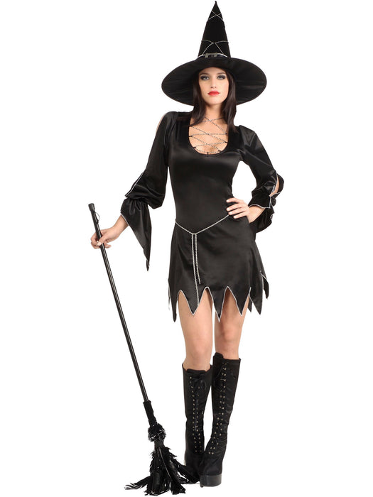 • Transform into a bewitching beauty with our Women's Sexy Bewitched Costume! This stunning ensemble features a sleek black dress and matching hat, perfect for casting spells and stealing hearts. Bring out your inner seductress and captivate all in sight with this irresistible costume.