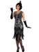 • Put on a show for the guys and dolls in this Women's Silver Star Flapper Costume. Flappers were a huge part of Roaring 20s especially when it came to entertainment and having a good time. This outfit comes as a sleeveless black dress featuring stripe and floral patterns made of shimmering silver detail. The hem has a long extension of fringe for added flair. Go out for some roaring fun during parties and themed events in flapper fashion.