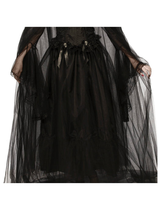 • Are you searching for the right skirt to finish your Halloween costume? Become a lady of darkness with our gothic Women's Soulless Skirt to complete your Halloween outfit. This 100% polyester skirt can be used for any costume whether it's a witch, dead bride, or gothic priestess. All in black and adorned with skulls and bows, this Women's Soulless Skirt will transform your costume from simple to spooktacular! Order a Women's Soulless Skirt online in time for Halloween!
