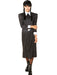 • Transform into the woeful Wednesday Addams with this perfectly macabre Women's Polka Dot Wednesday Addams Dress! This midi black dress features a dotted white flower pattern, attached white cuffs and a dramatic collar, juliette sleeves, and faux black buttons down the front. With this costume, you can live out Wednesday's iconic opening scene of the self-titled hit show. Please note, piranhas are not included! This Women's Wednesday Addams Dress will be your favorite for Halloween, making your entrance at Nevermore Academy, or day trips to Jericho with Enid. Addams Family costumes always make for a classic Halloween costume and are a perfect way to get your whole crew involved in a group costume idea everyone will love!